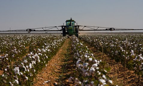 Across the plains, the remaining cotton crops are in the process of defoliation. Chemical is sprayed, either by ground or aerial application, to stop plant growth, shed leaves and stimulate boll opening. This Fortenberry patch of cotton looks pretty good -- too bad it's only about 50 acres of drip irrigation.